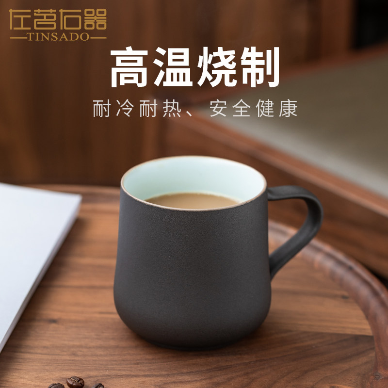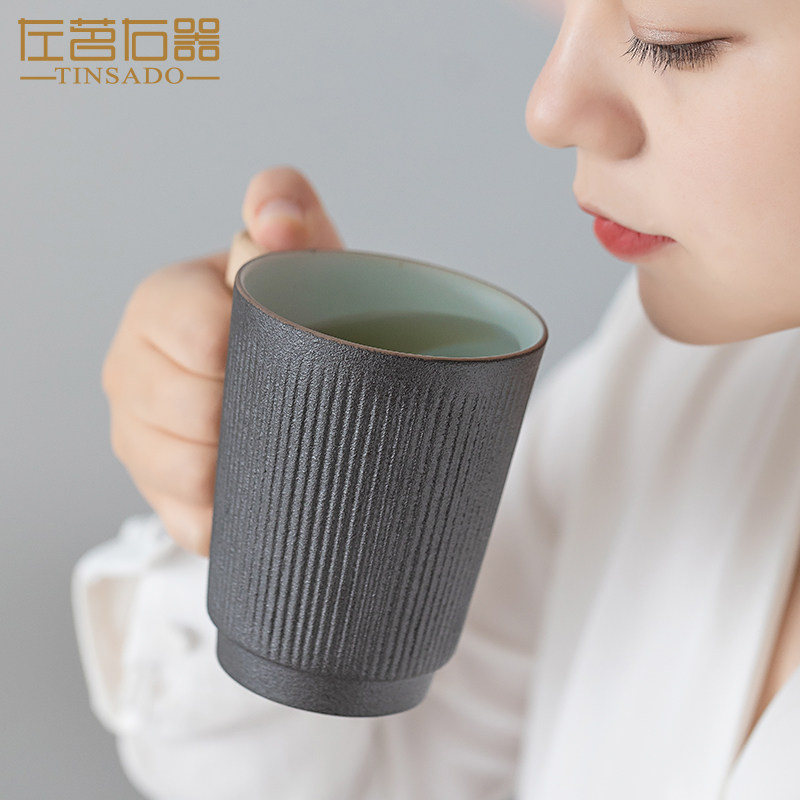 Left and right ceramic cup mug handle Japanese household water cup coffee cup with spoon Cup retro tea cup female