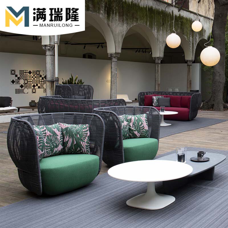 Nordic designer creative outdoor rattan sofa coffee table combination hotel villa model room soft decoration project homestay