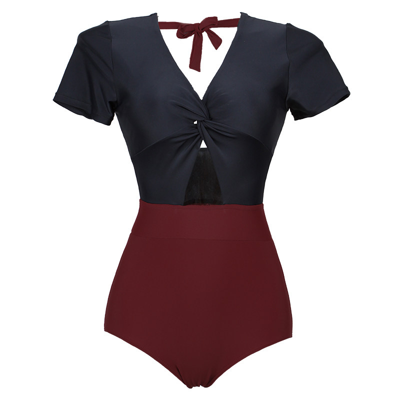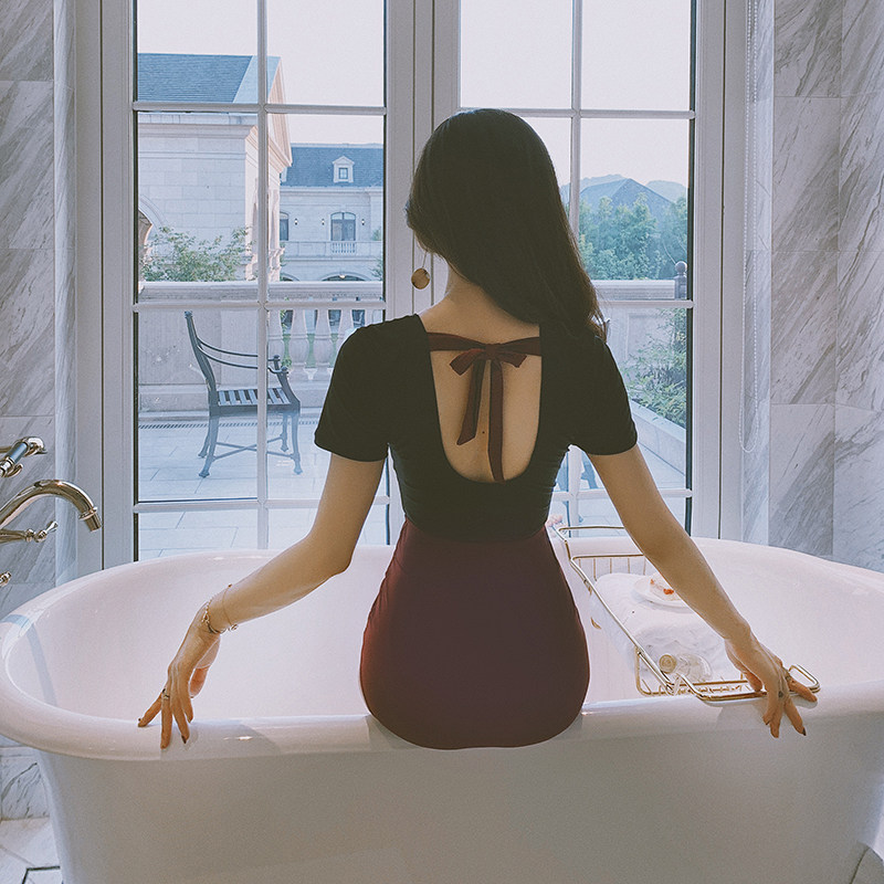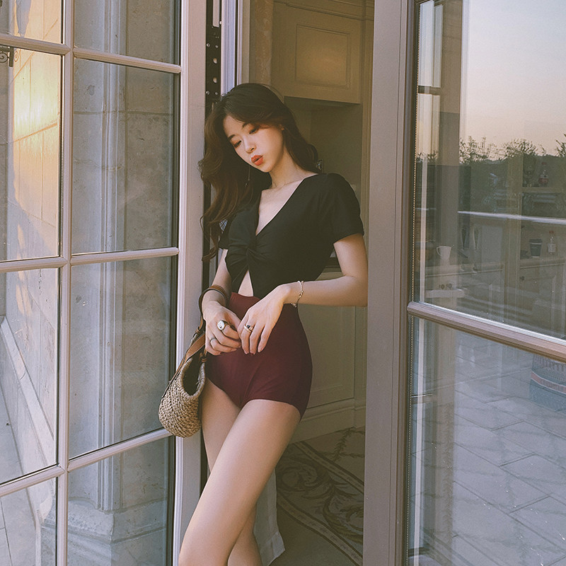Short-sleeved swimsuit women's one-piece belly cover thin sexy Korean ins tight conservative swimsuit triangle new swimsuit