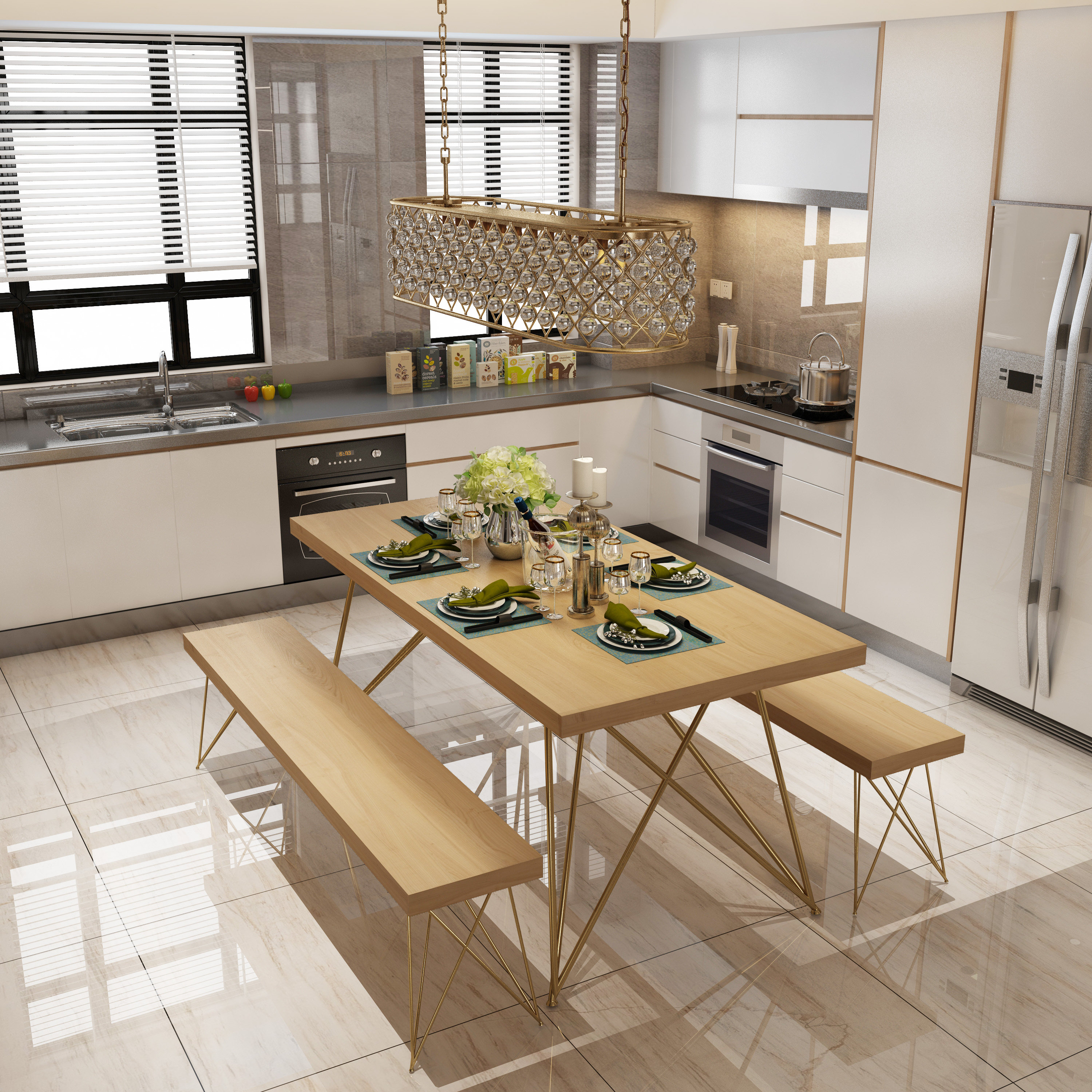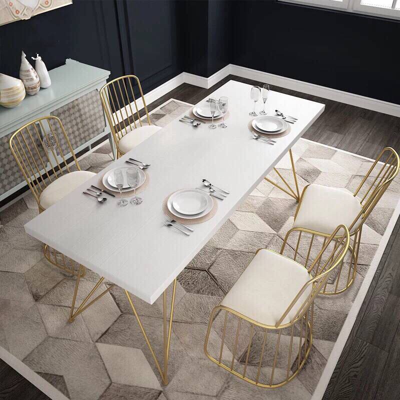 Nordic Golden Solid Wood Dining Table And Chairs Furniture Combination Modern Minima Small Household Meeting Negotiation Table And Chairs Combination