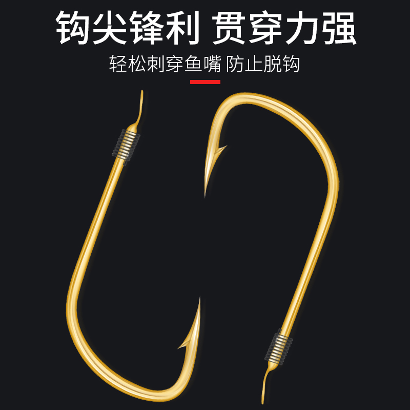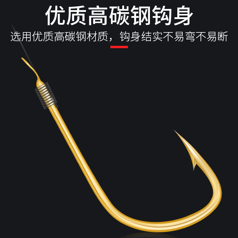 Imported sleeve hook with or without barbs tied boxed finished gold sleeve fish hook set sub-line double hook fishing line crucian carp hook