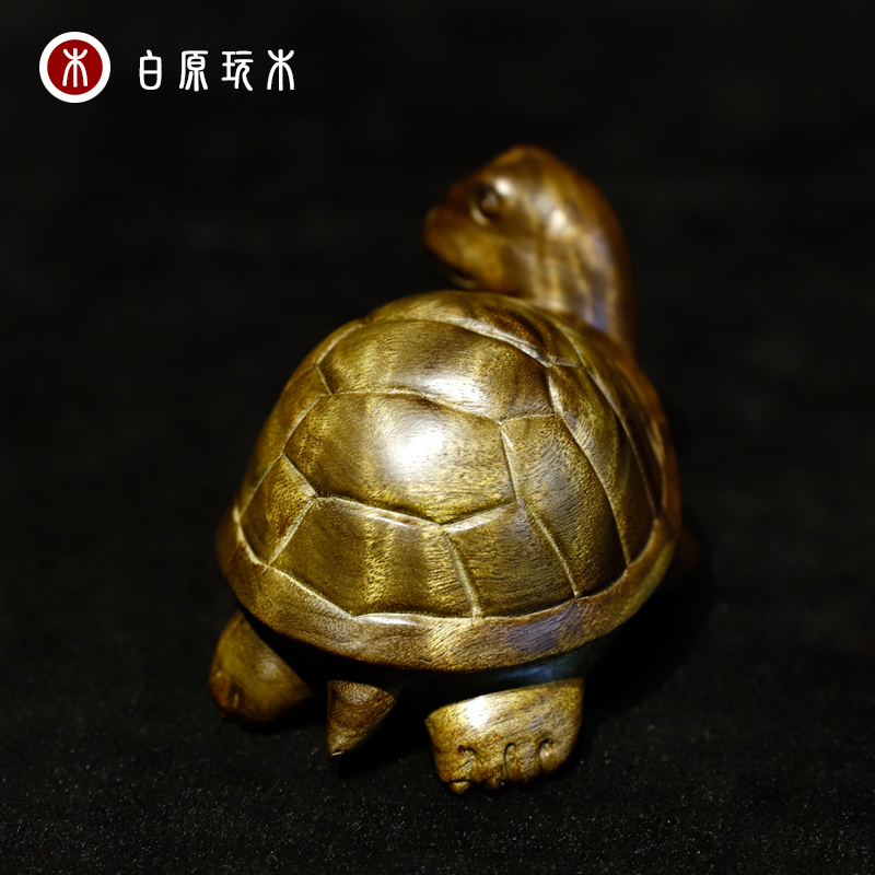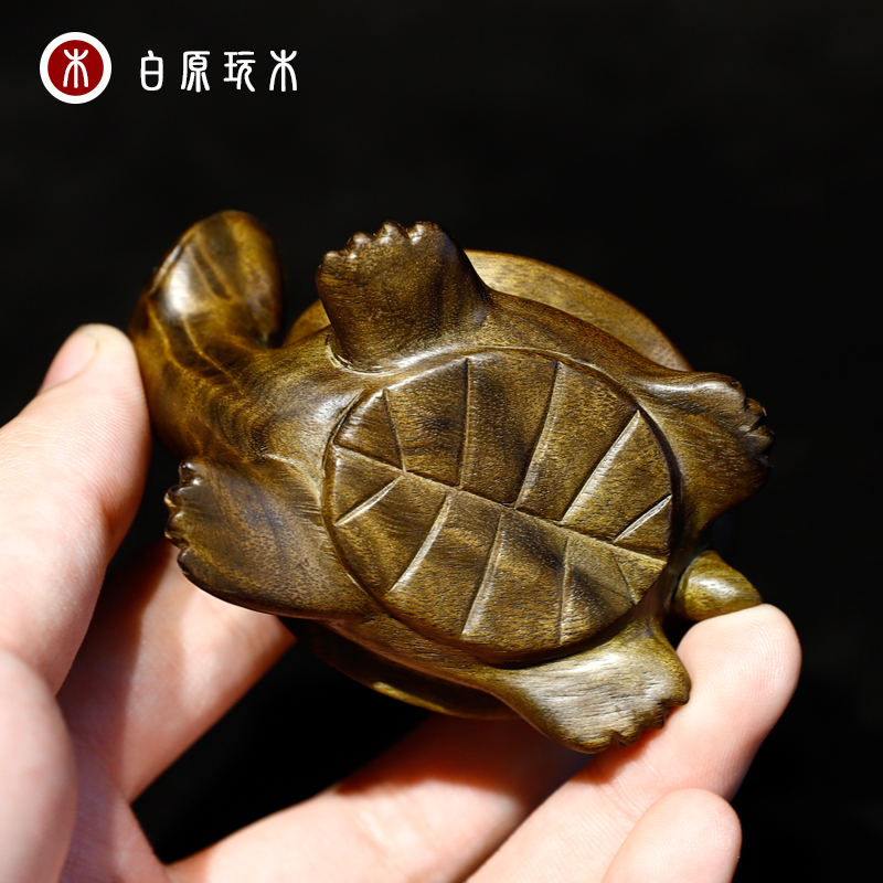 Golden Silk Nanmu Fuchia World Small Turtle Dish Play Handlebar pieces Men's Wen Play Artisanal wood Carved Car Tricks of the Fortune Swaying Pieces