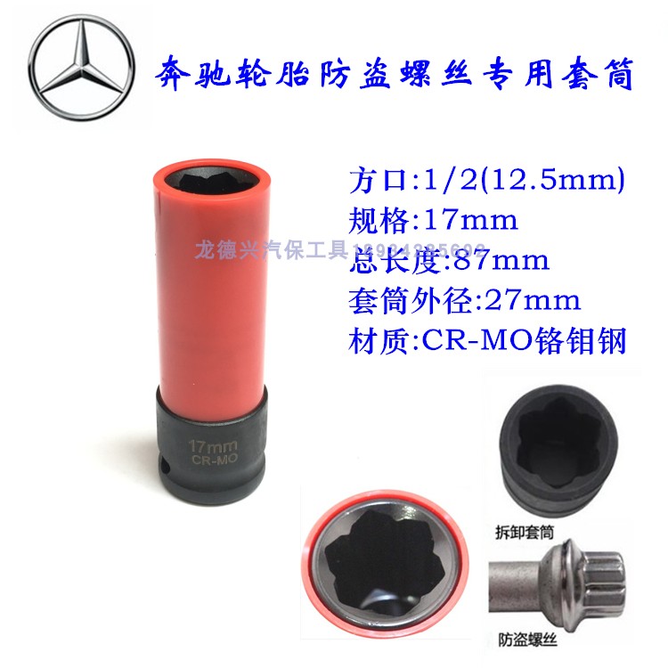 Benz Tire Special Sleeve 17mm Pintex Theft Protection Screw Disassembly Sleeve Benz Tire S Tie Anti-Injury Sleeve