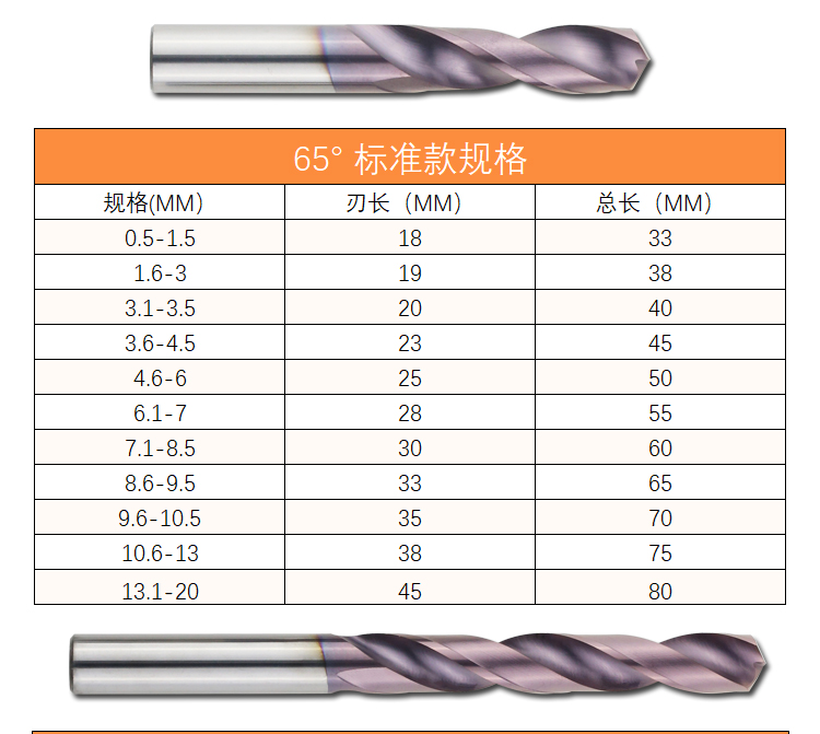 Tetai selected 65 degrees integral hard alloy tungsten steel black purple coated drill ultra-hard twist drill 13-18MM