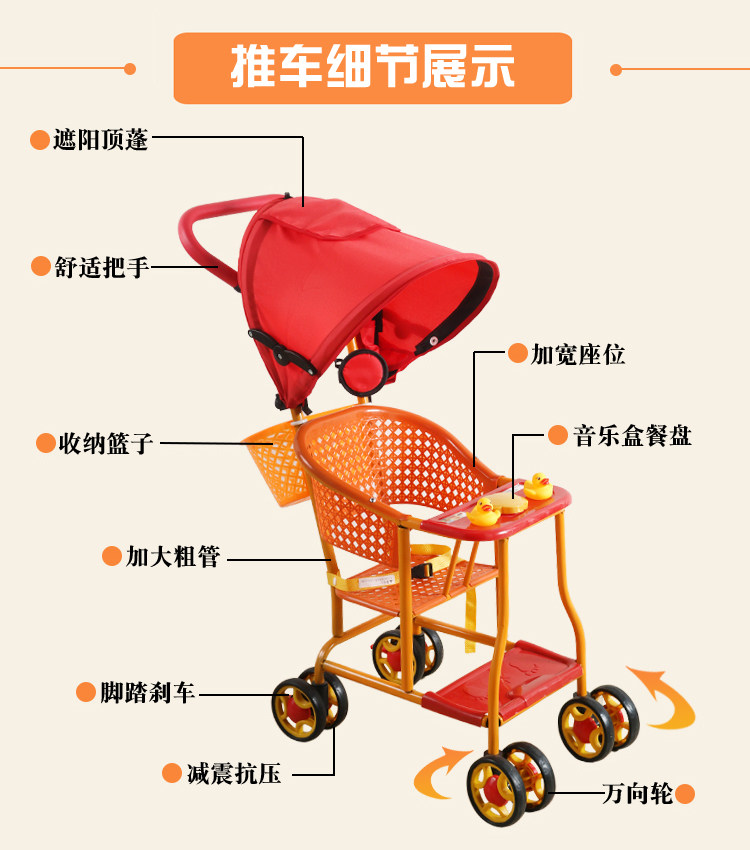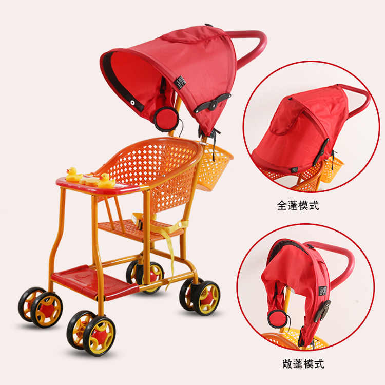 Explosive summer universal wheel with awning baby plastic imitation rattan chair trolley four-wheel double brake light stroller