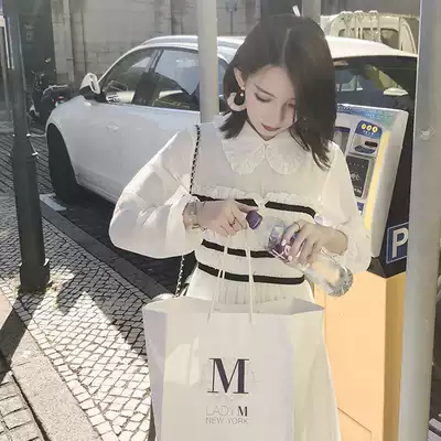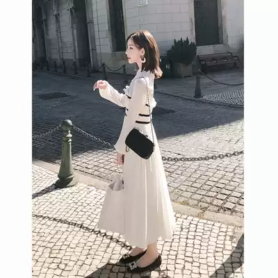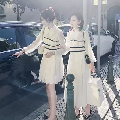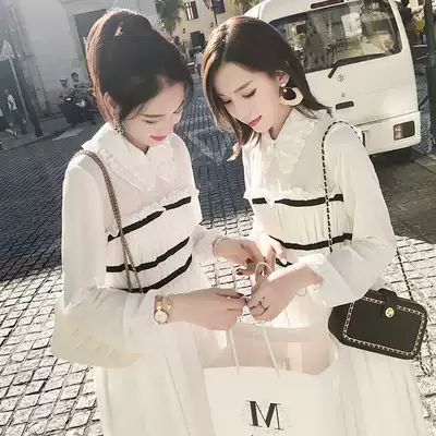 European station 2021 new autumn chiffon dress stitching doll collar slim temperament long-sleeved holiday skirt female