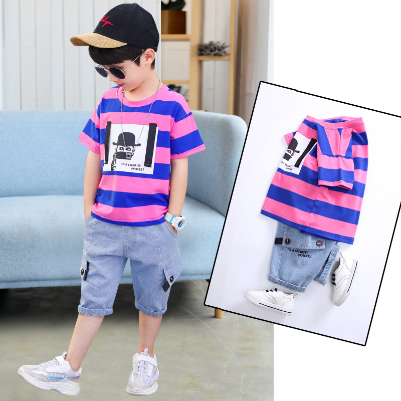 Boy summer suit 2021 new foreign style 6 children's suit 7 summer 8 boy 9 handsome two-piece set 12-year-old tide suit