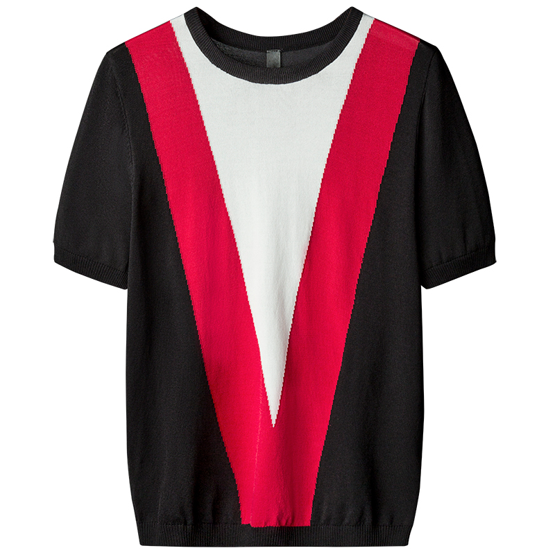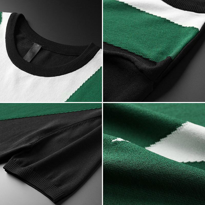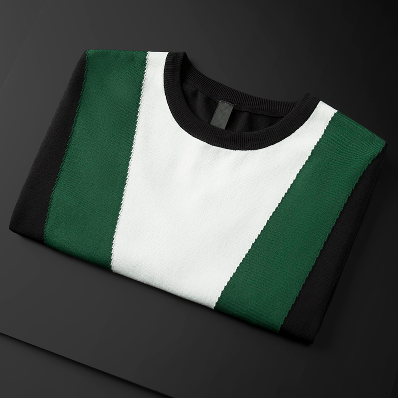 2021 new summer short-sleeved knitted sweater men's Korean version loose T-shirt thin ice silk contrast color round neck inner jacket