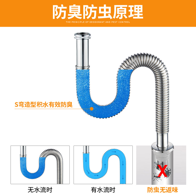 Muyun wash basin Stainless steel drain pipe Basin drain pipe Drain pipe Wash basin basin deodorant bellows accessories