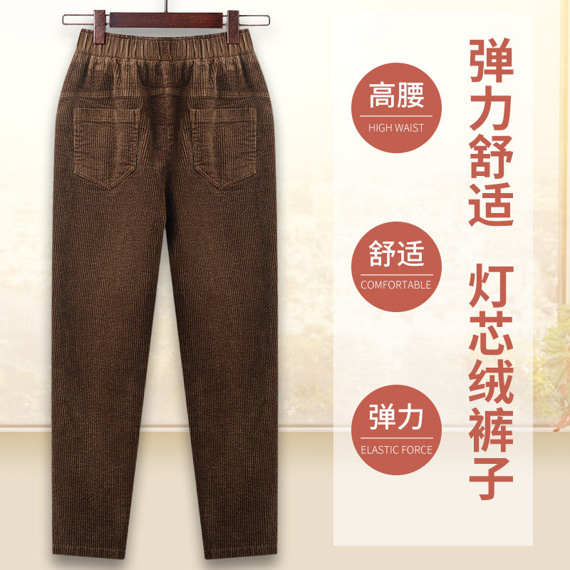 Corduroy pants women's straight loose tight pants mom radish pants strip velvet elderly mother-in-law trousers spring and autumn models