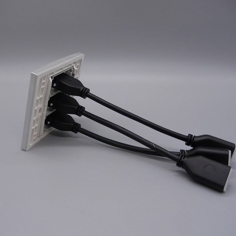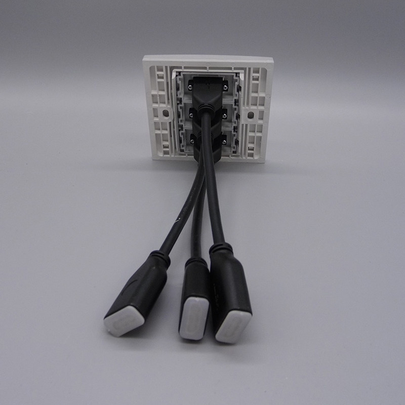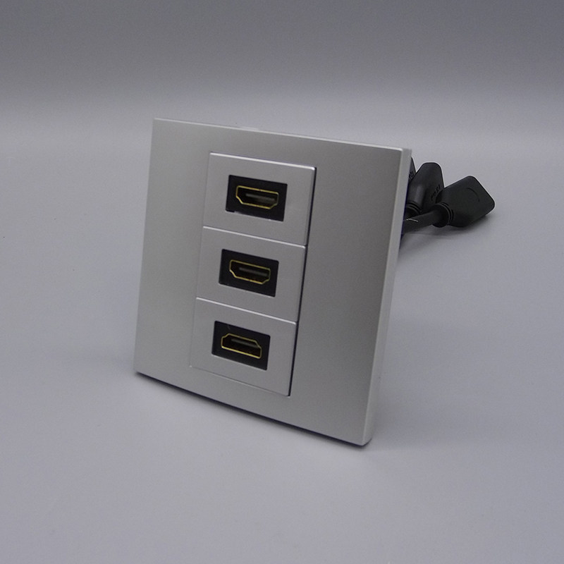 Silver grey 86 type three HDMI high-definition socket panel with wire 2 0 version in-line multimedia video socket