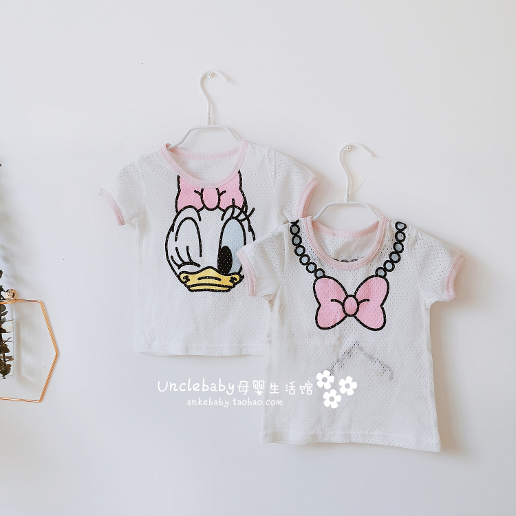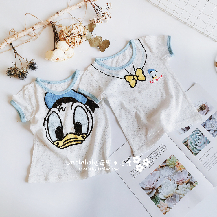 Outlet Japan Quality Summer Cute Duck Pure Cotton Mesh Hollowed-out Cool Quick Boy Girl Clothes T-shirt 2 Pieces
