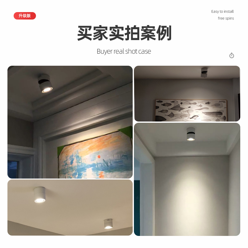 Surface-mounted spotlight led background wall photo painting wall washer lamp home living room corridor aisle black downlight adjustable angle