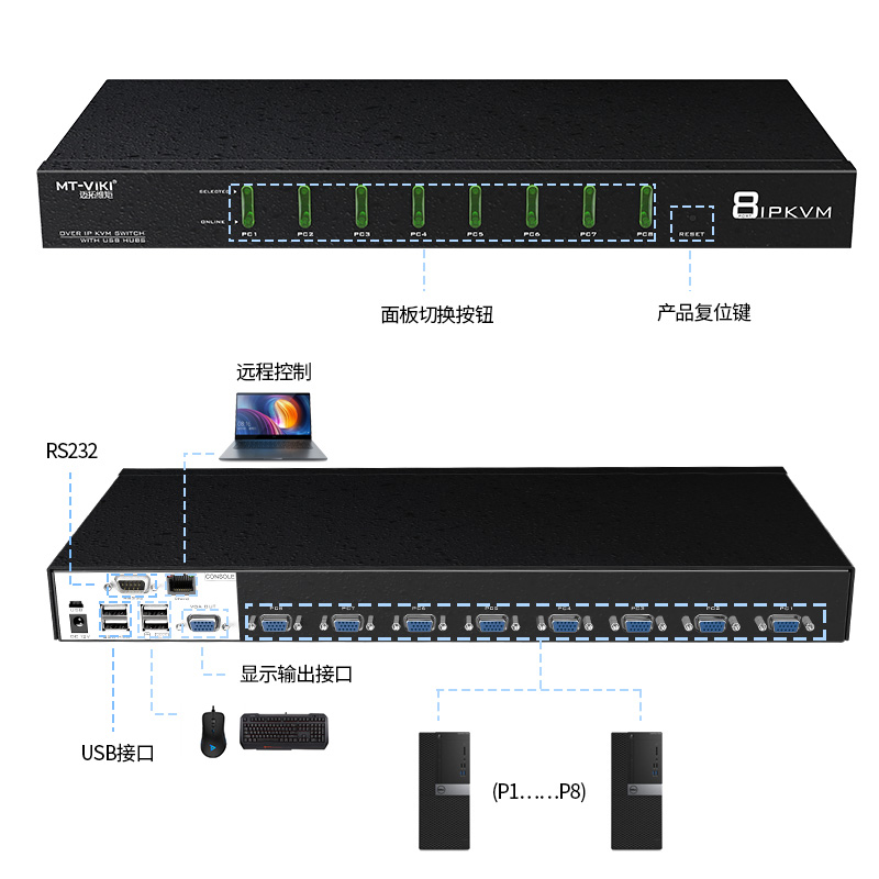 Maxtor Wei Moment MT-9108UP KVM switch 8 in 1 out IP remote access control OSD can be cascaded automatically