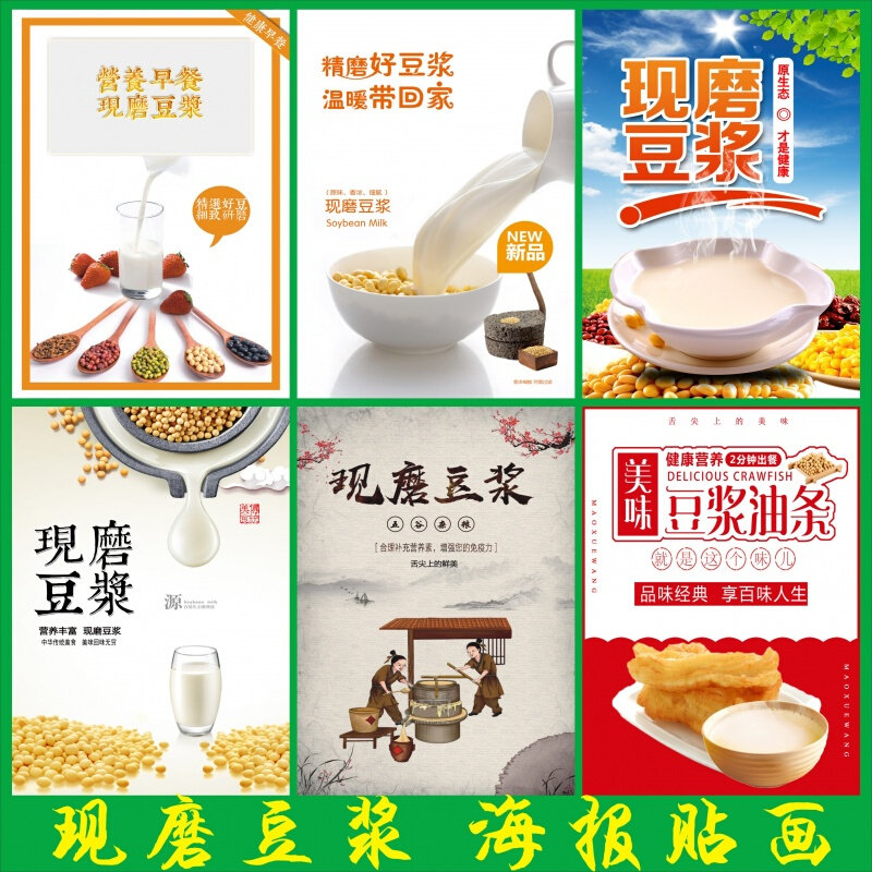 Gourmet breakfast 5 freshly ground soy milk poster advertising wall stickers breakfast shop fritters poster stickers wallpaper stickers printing