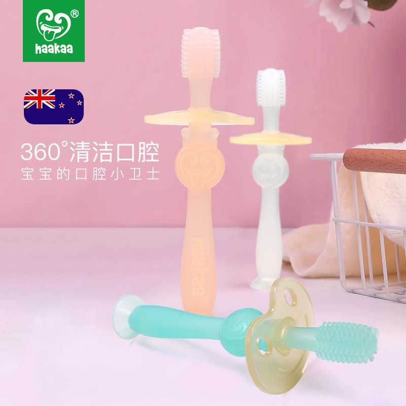 Baby Training Toothbrush Silicone Soft Bristles 0-1-2-3 Years Old Baby Toddler Oral Cleanse 360 Degree Children's Milk Toothbrush