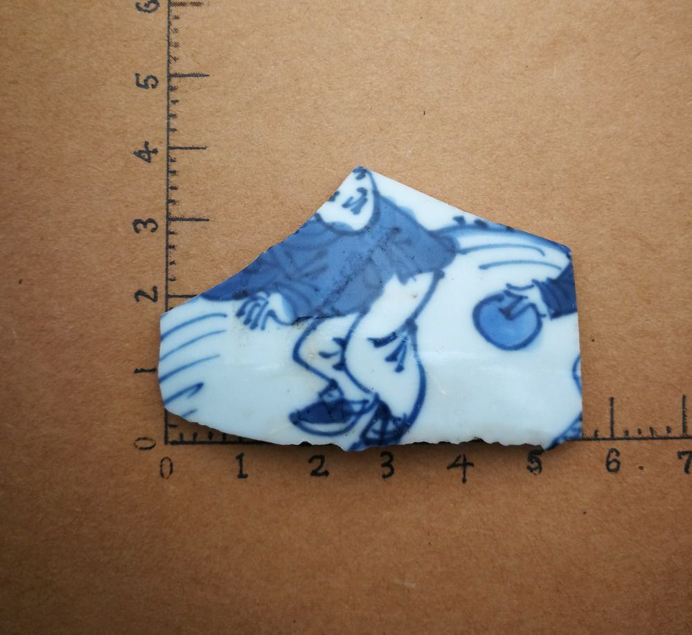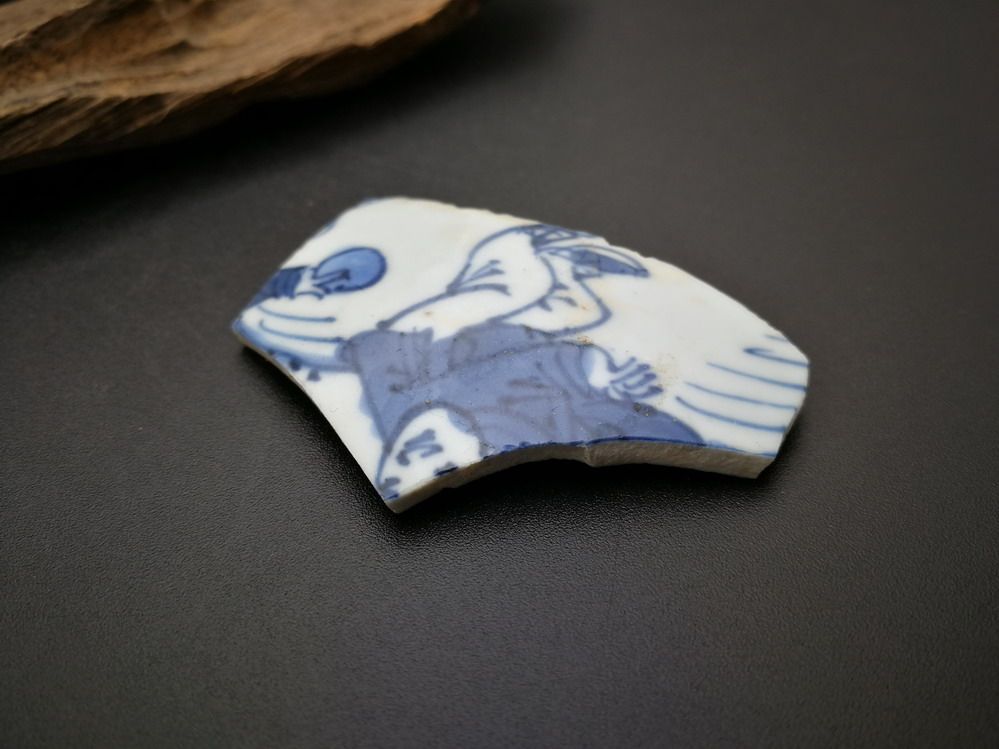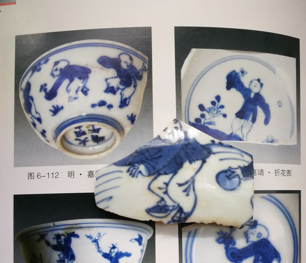 Child 18 Ming Dynasty blue flower palette chips learn specimens baby play boy big head character