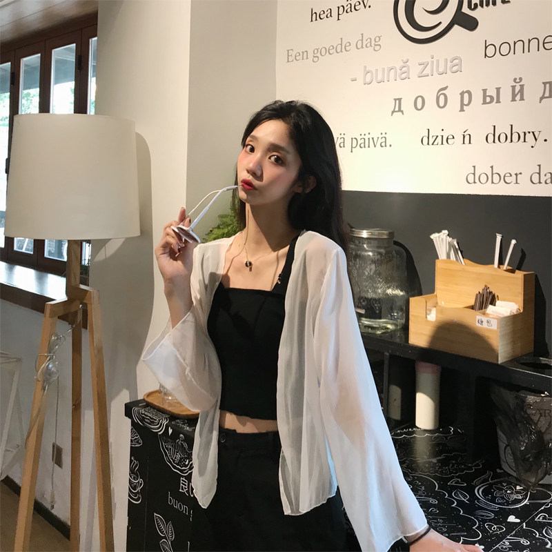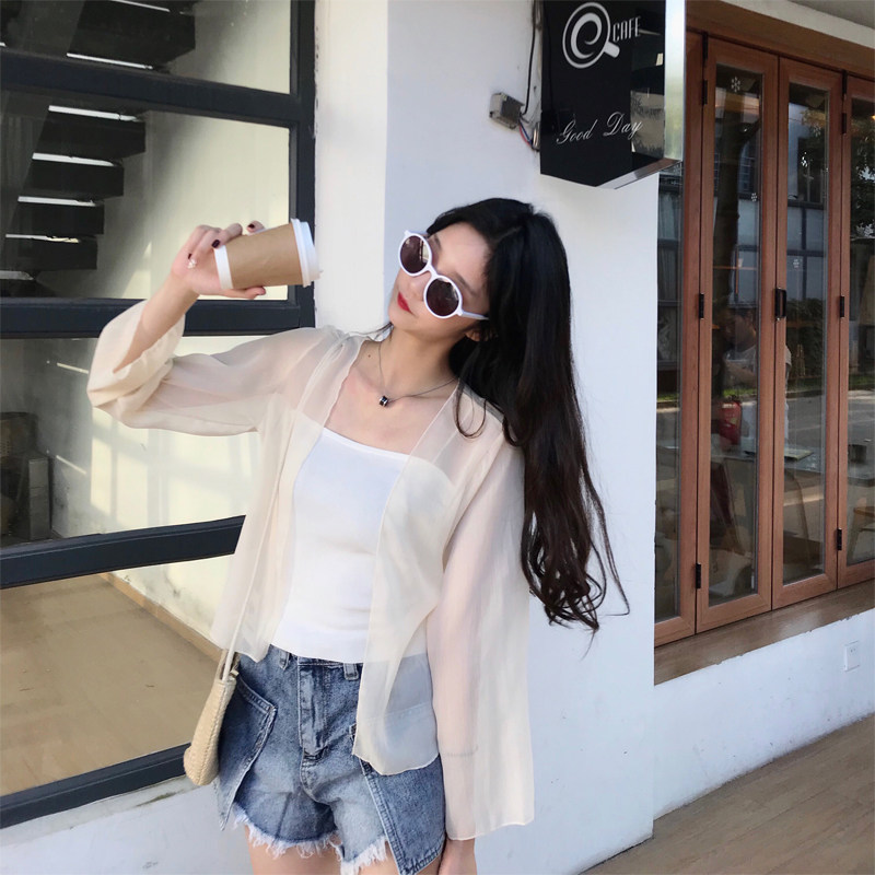 Sunscreen Women's Cardiovert Summer Short Outside Hitch White Very Fairy Snowspun Blouse Clothed Jacket with a thin jacket