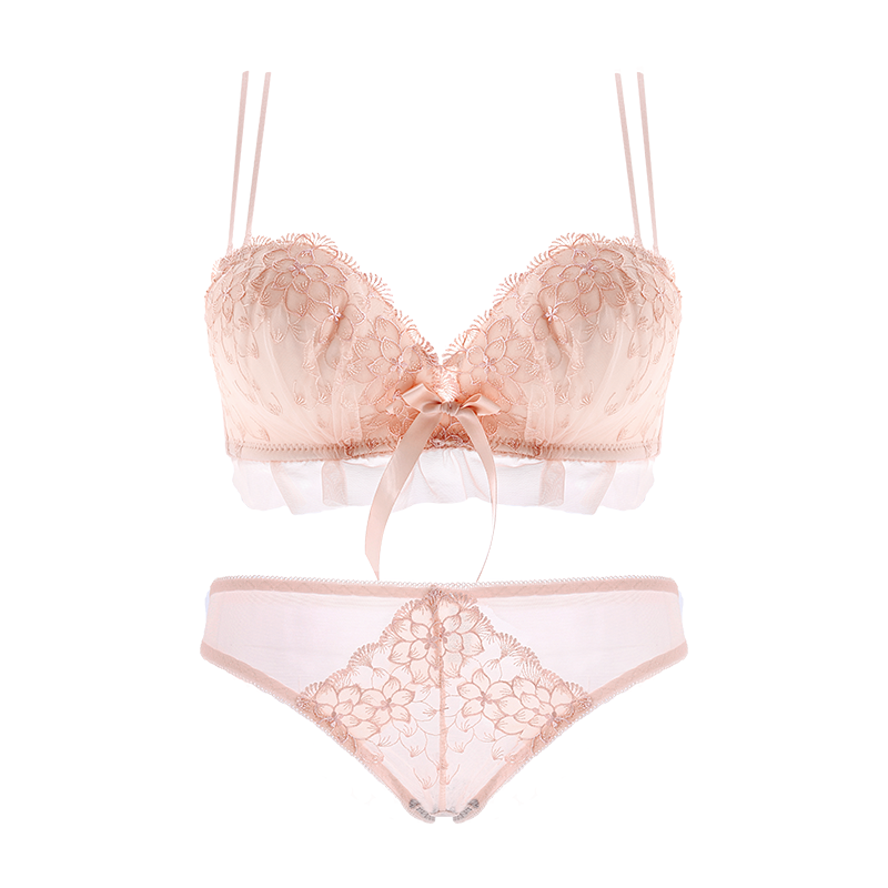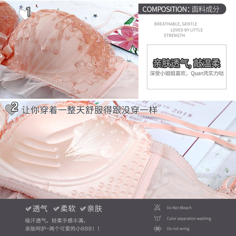 Underwear No steel ring thickened mold cup small breasted student with less girls gathering adjusted sexy Wen bra underpants suit