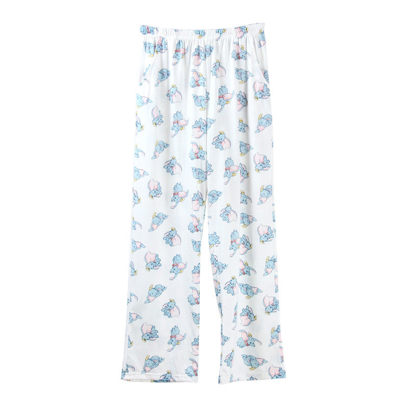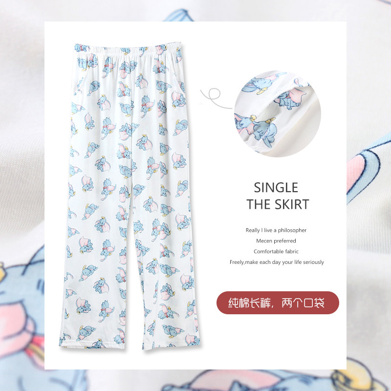 Cartoon Small Flying Elephant Trousers Sleeping Pants Woman Summer Pure Cotton Thin style Loose Air Conditioning Pants Mosquito-Proof Pants Spring Autumn Full Cotton Home Pants