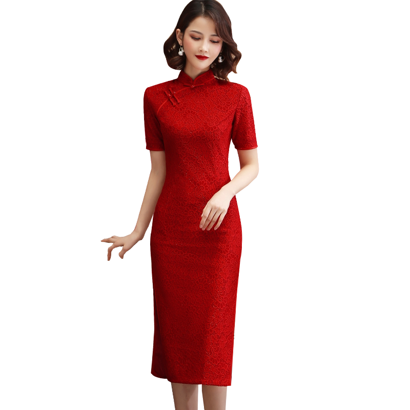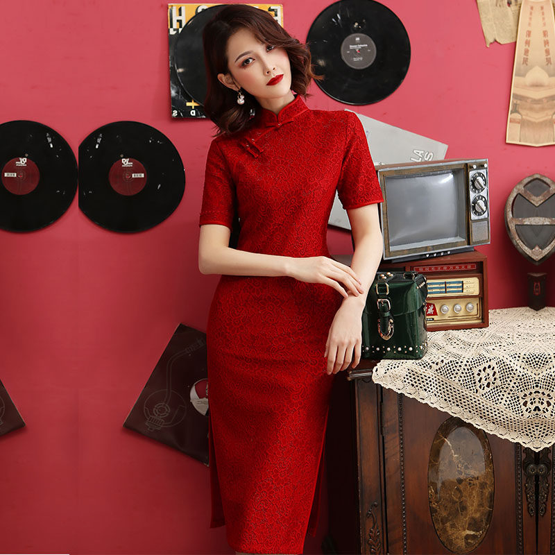 Lace cheongsam 2021 new young girl Chinese style toast dress improved dress summer medium-long version