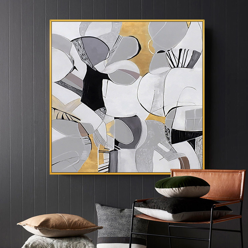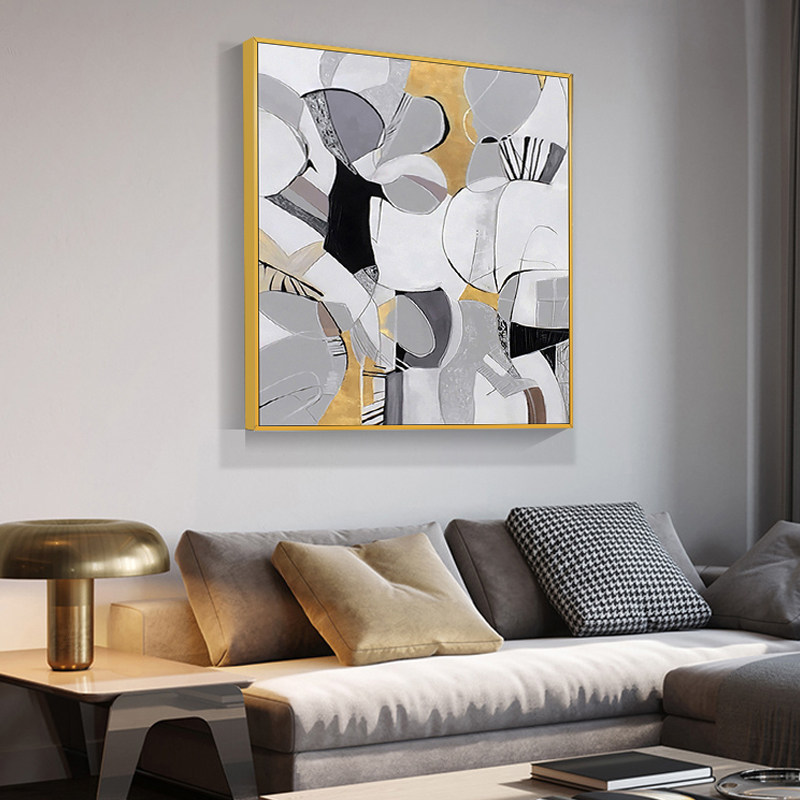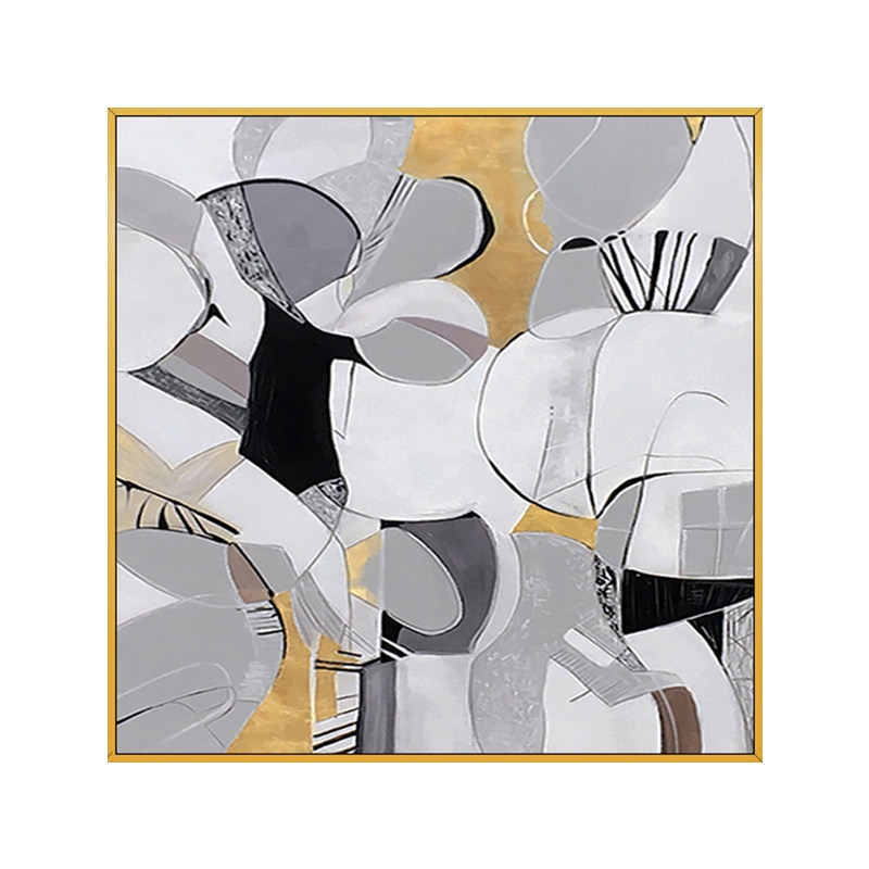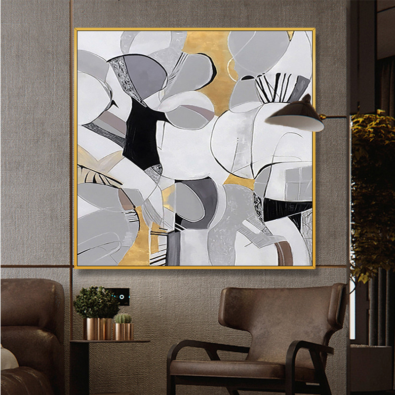 Hand painted oil painting Modern succor Xuanguan decoration painting Nordic American light luxury hanging paintings abstract gold geometric figures