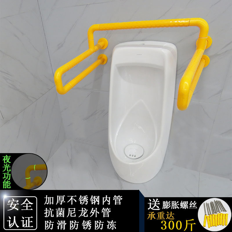 Handicap accessible urinal armrest powder room elderly physically and mentally handicapped safe public toilet urinal bucket armrest
