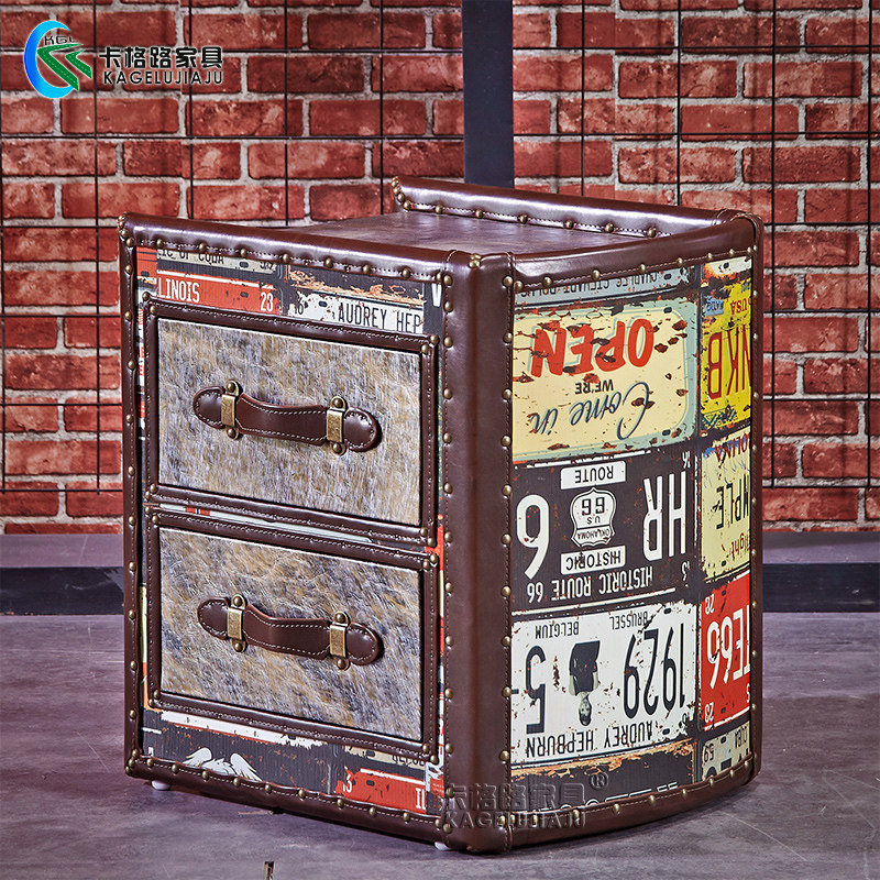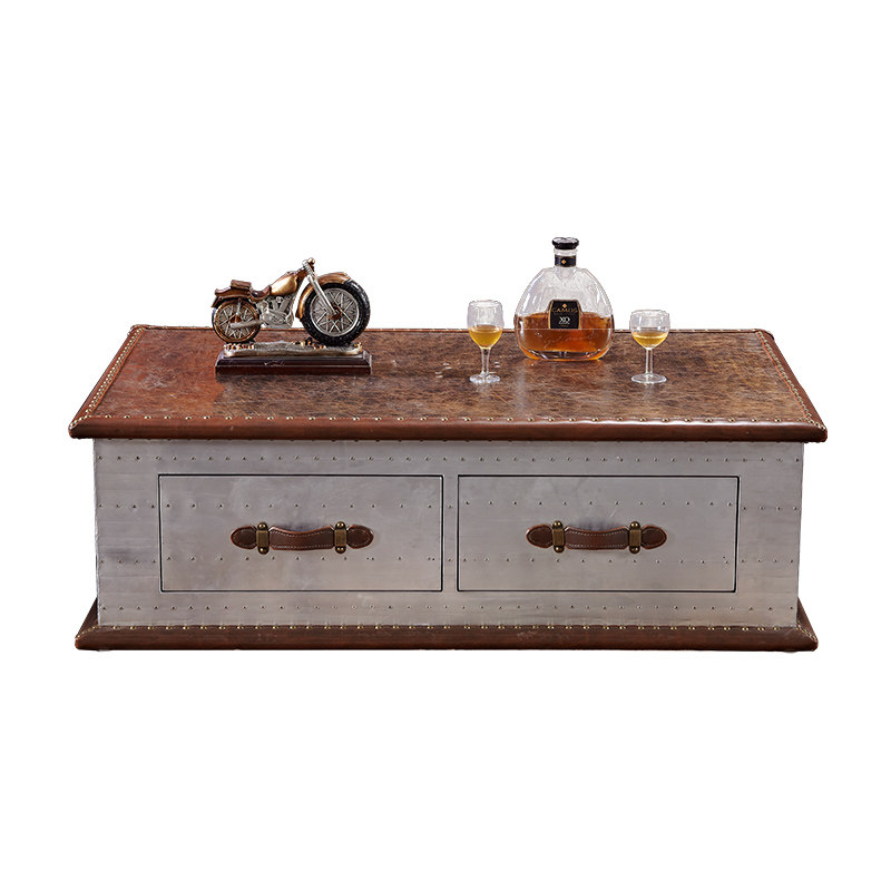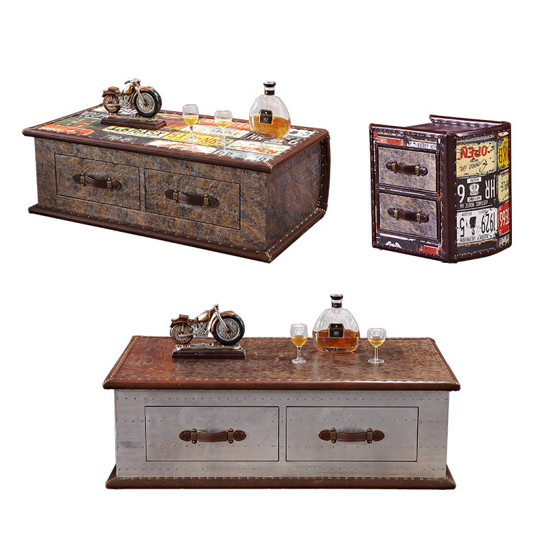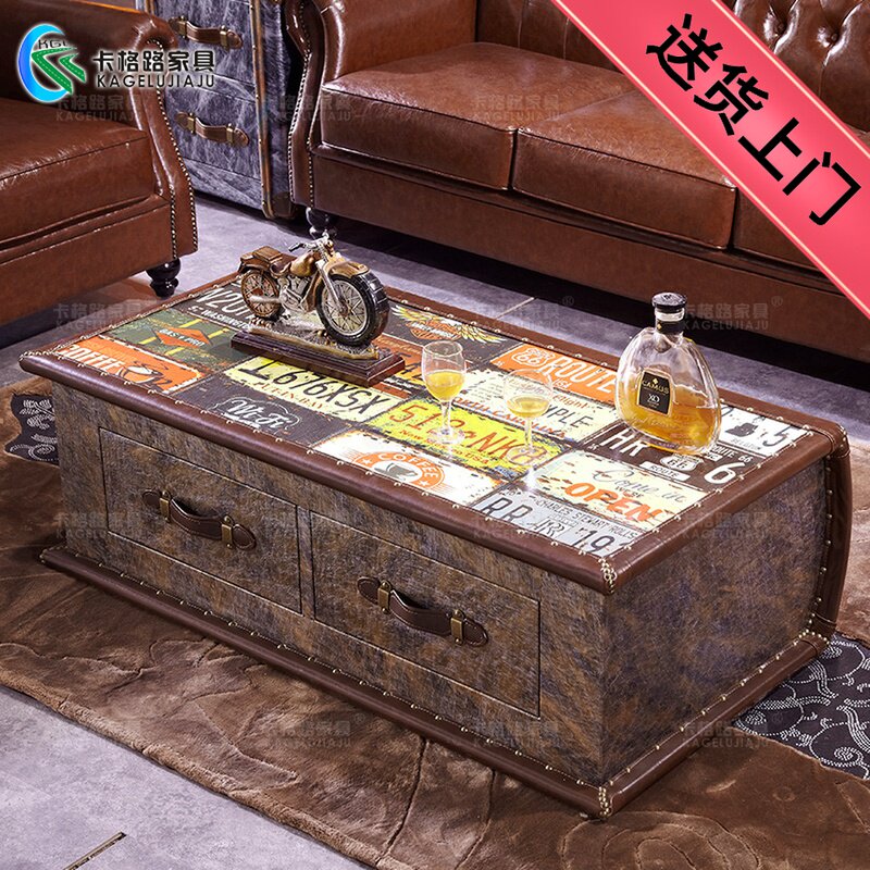 American industrial style retro old coffee table metal double drawer with drawer designer personality storage creative coffee table