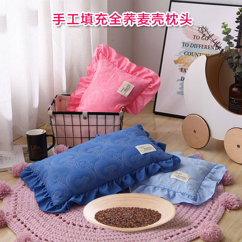 Buckwheat skin pillow core lotus leaf edge adult single pillow student children buckwheat shell pillow neck protection hard pillow removable and washable