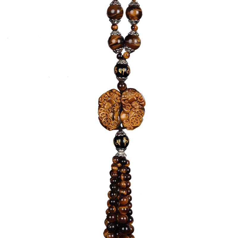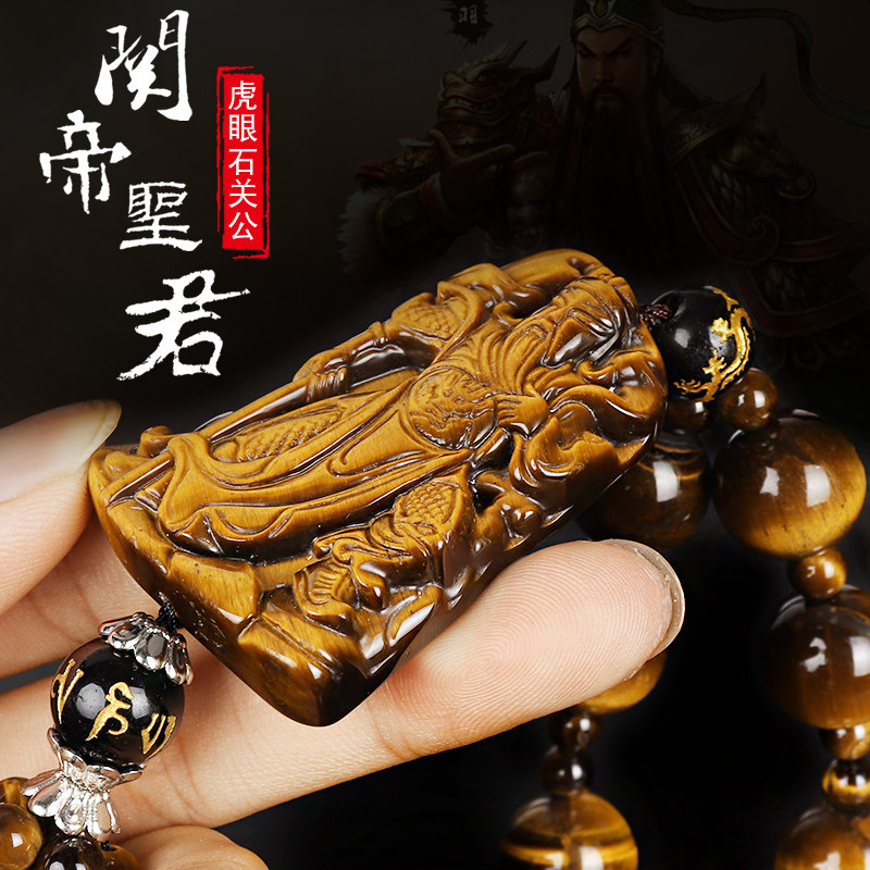 Tiger Eye Stone Double Pixiu Pendant (Word Bead) Tiger Eye Stone Guan Gong Pendant Tiger Eye Stone Guanyin Pendant