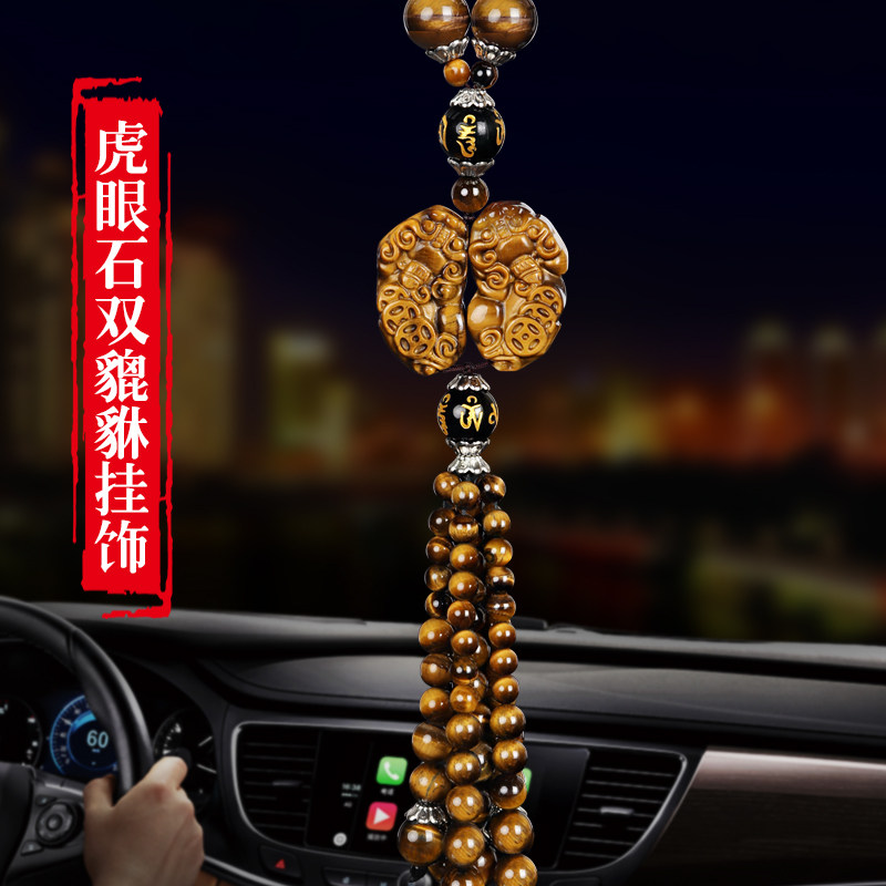 Car pendant car high-end Pixiu car interior creative rearview mirror pendant car with natural tiger eye stone pendant for men