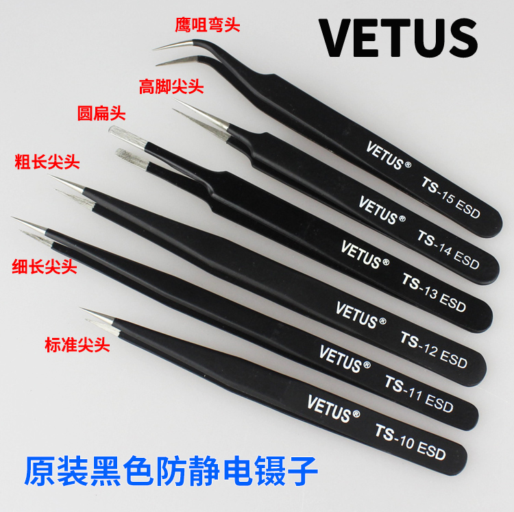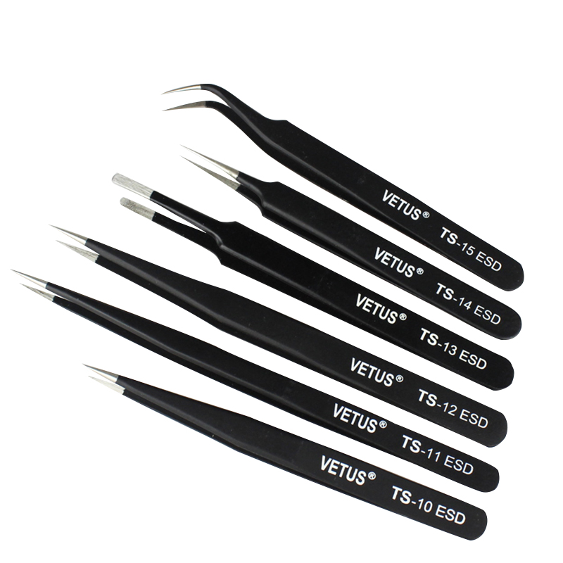 VETUS Stainless Steel Antistatic Tweezer Precision ESD Pointed Elbow Dismantling Machine Electronic Maintenance Tool