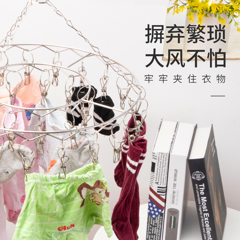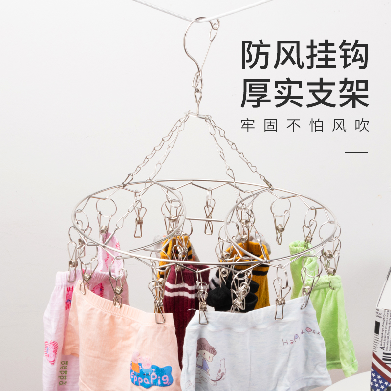 Thick clothes rack multi-clip stainless steel clothes drying sock rack Children's multi-function windproof socks clip sock rack hook