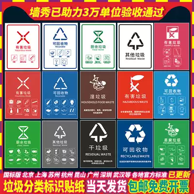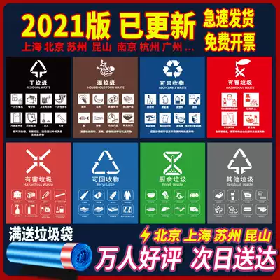 Garbage sorting logo sticker trash bin logo wet and dry recyclable other Shanghai Beijing Suzhou Kunshan poster