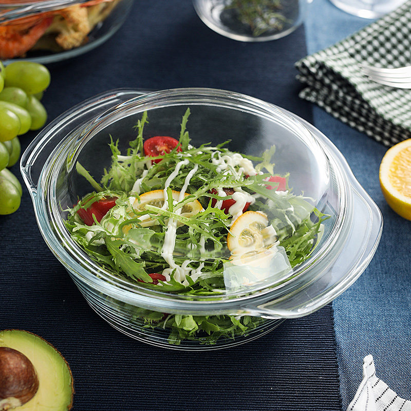 Heat-resistant glass pot with lid hot rice steamed rice utensil microwave oven baking special household soup bowl with bubble bread and grilled fish plate