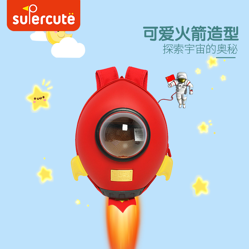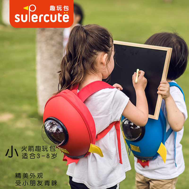 Korean version of the personality cartoon rocket backpack creative 3-8 kindergarten large, medium and small class school bag Children's outdoor backpack