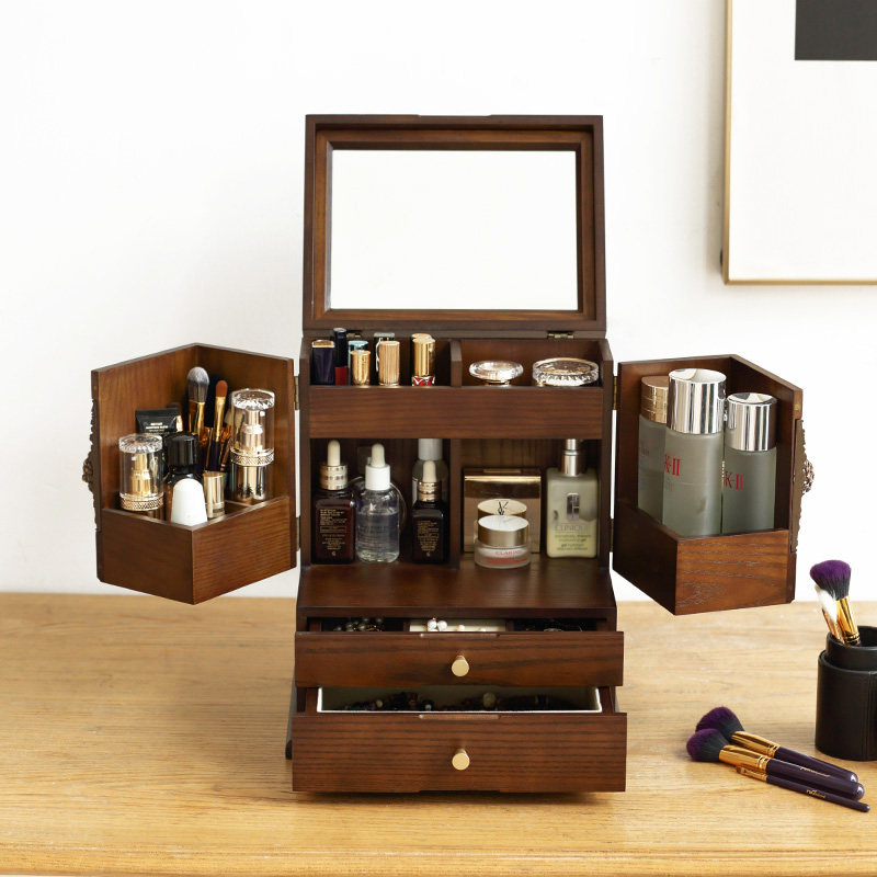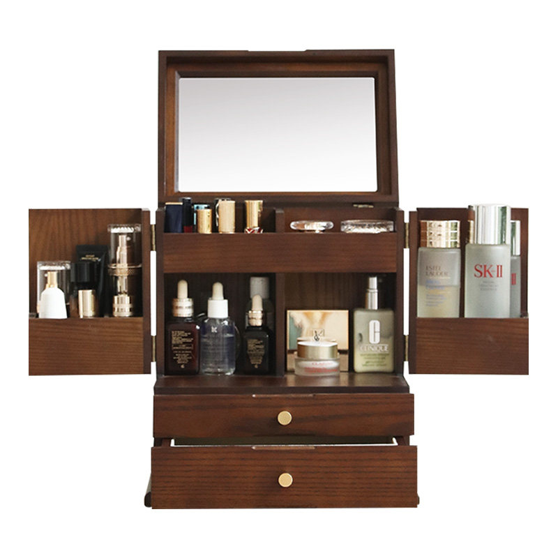 Cosmetics contain box large-capacity skin care desktop dust-proof shelf wooden household with mirror