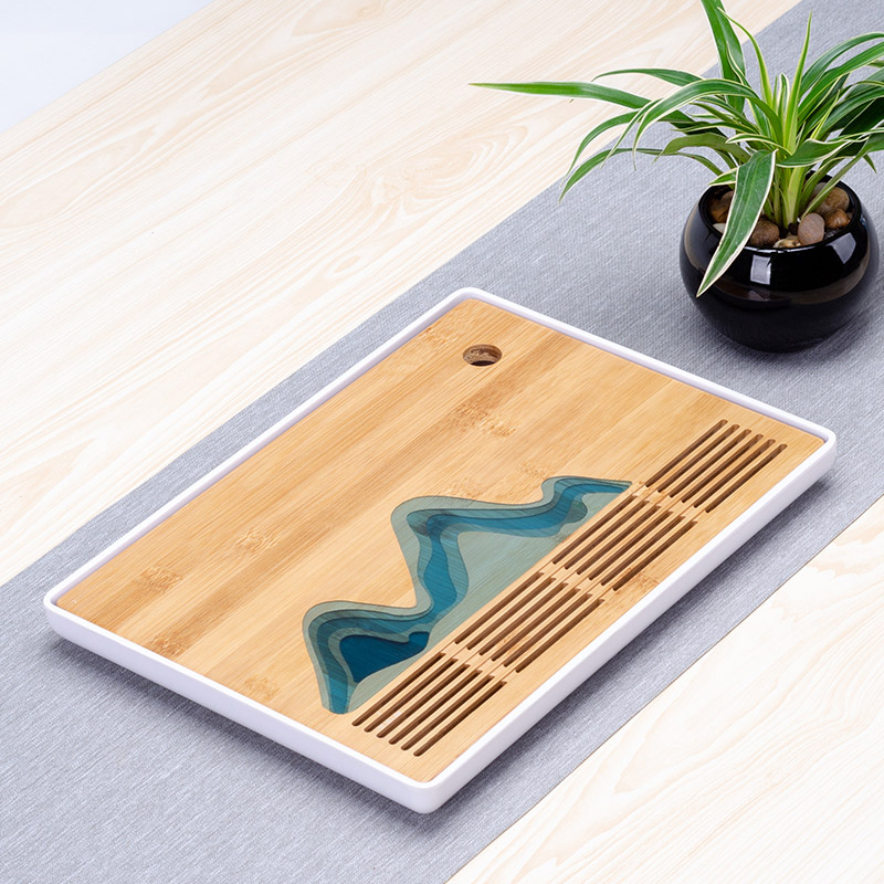 Minimalist home tea tray modern dry bubble table bamboo water storage embedded in tea sea home small living room day-style depository