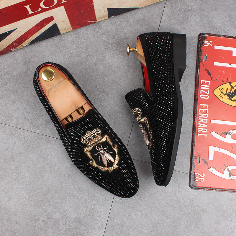 2021 Summer new fashion hot-drilling personality Inn pointy leather shoes inner heightening hair stylist sloth beans Bean Shoe Tide