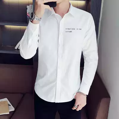 Oxford spinning shirt men's spring and autumn solid color youth casual clothes students slim Korean long sleeve shirt tide