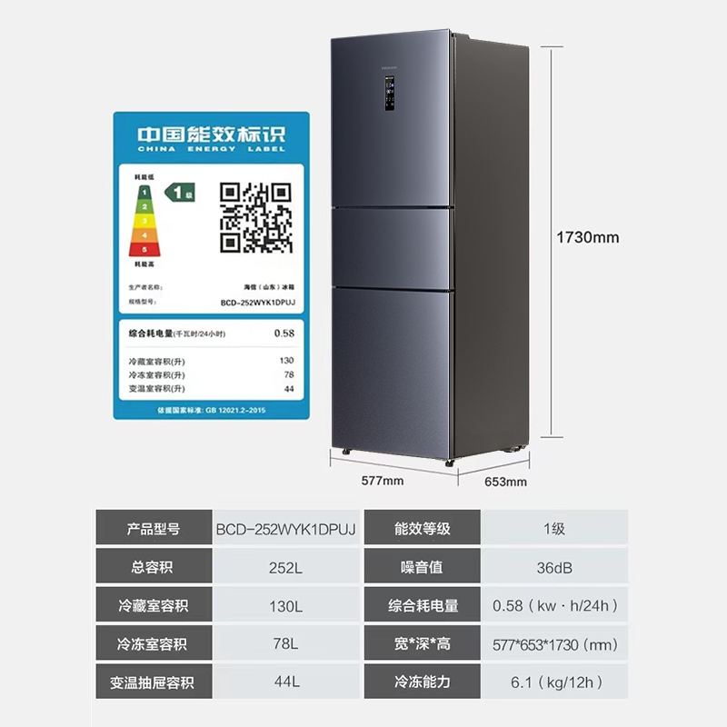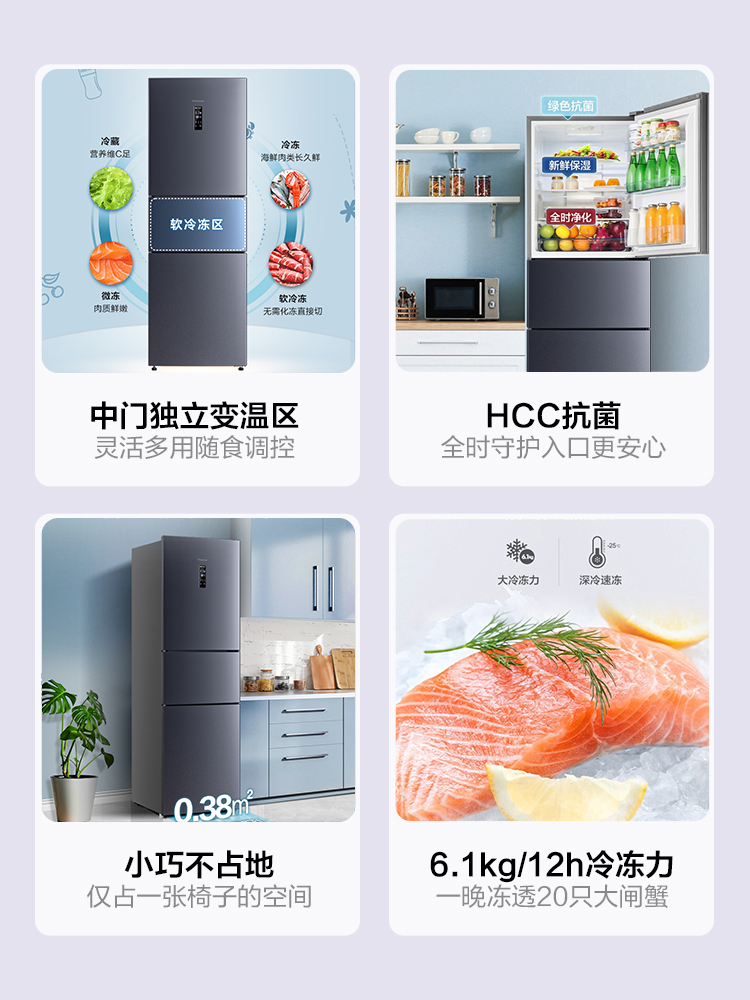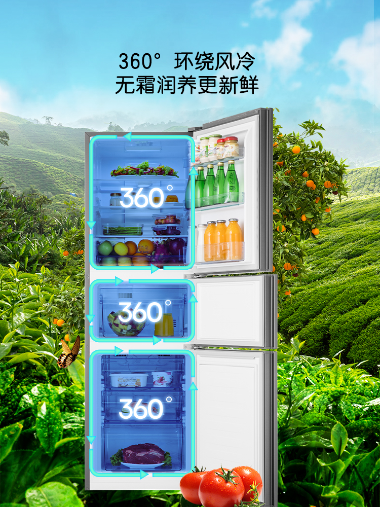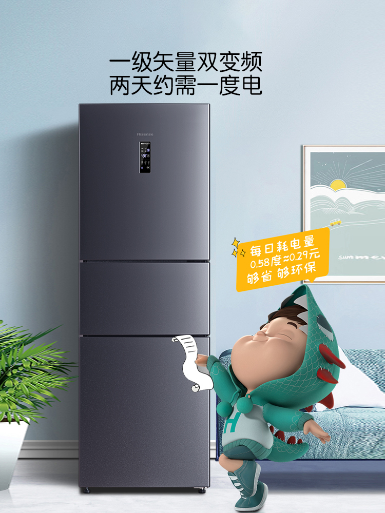 Haixin 252L Liter Three Doors Home Small Fridge Double Frequency Conversion First-class Energy Efficiency Air-cooled Frost-free Energy Saving Low Noise Rental