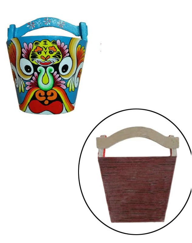 Social Fire Horse Spoon Face Spectrum Wooden Barrel Shaped Face Spectrum Blue Bottom Tiger Tiger Raw Wilt Handmade Folk Characteristic Dining Hall