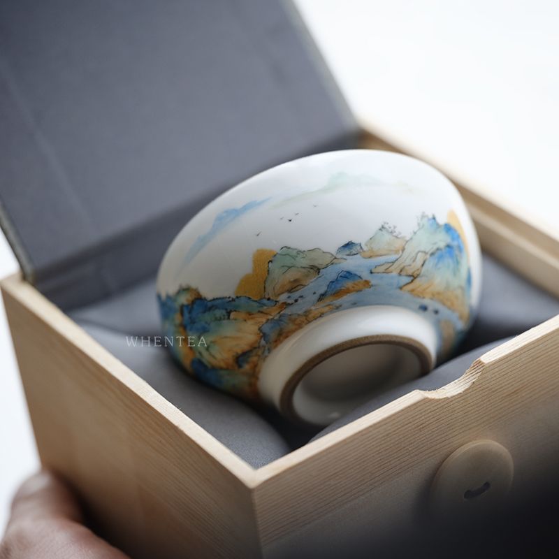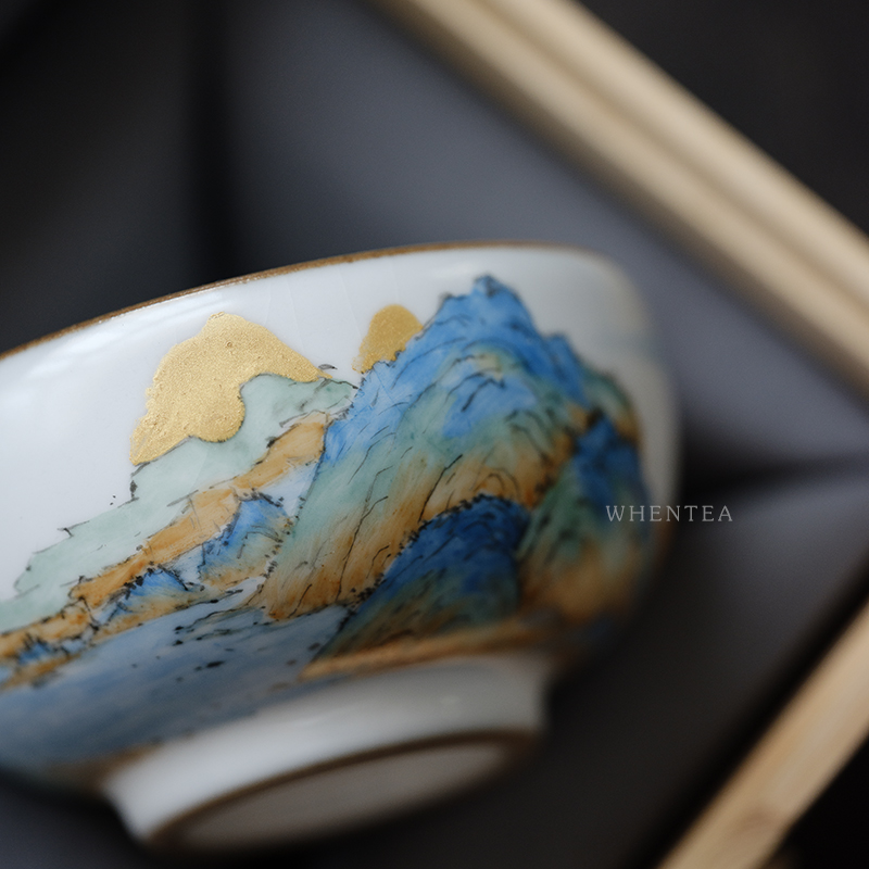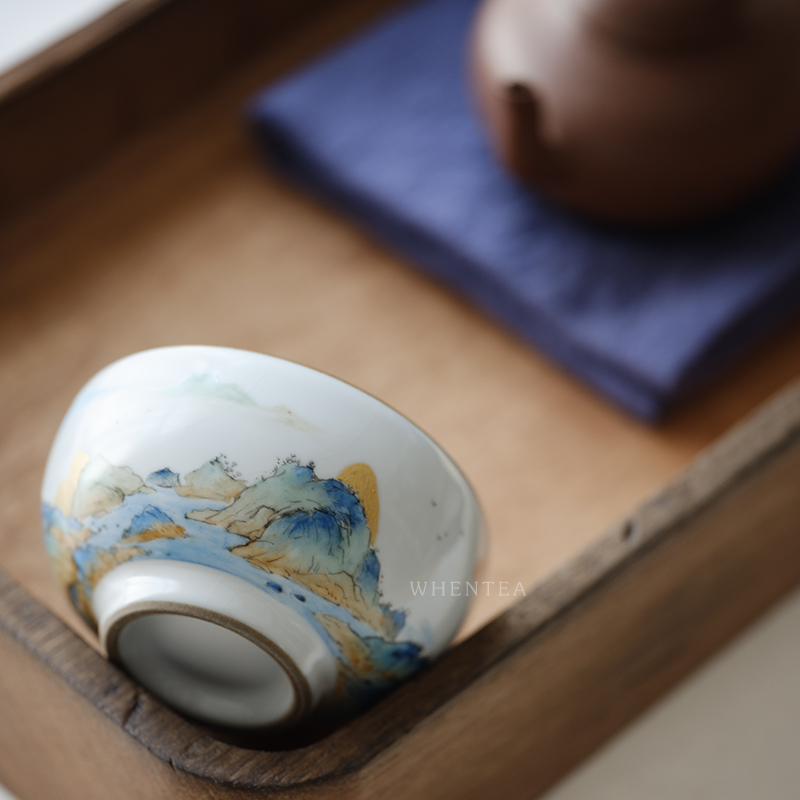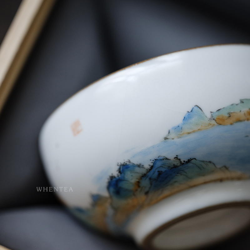 Wen said) Jingdezhen Ruyao pure hand-painted master cup "Thousands of miles of country and mountain map"pure handmade Kung Fu tea cup