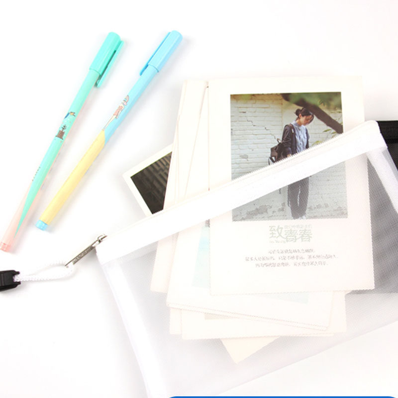 Kangbai stationery bag small Qingming transparent mesh zipper HI pencil bag student exam pencil bag boys and girls storage bag