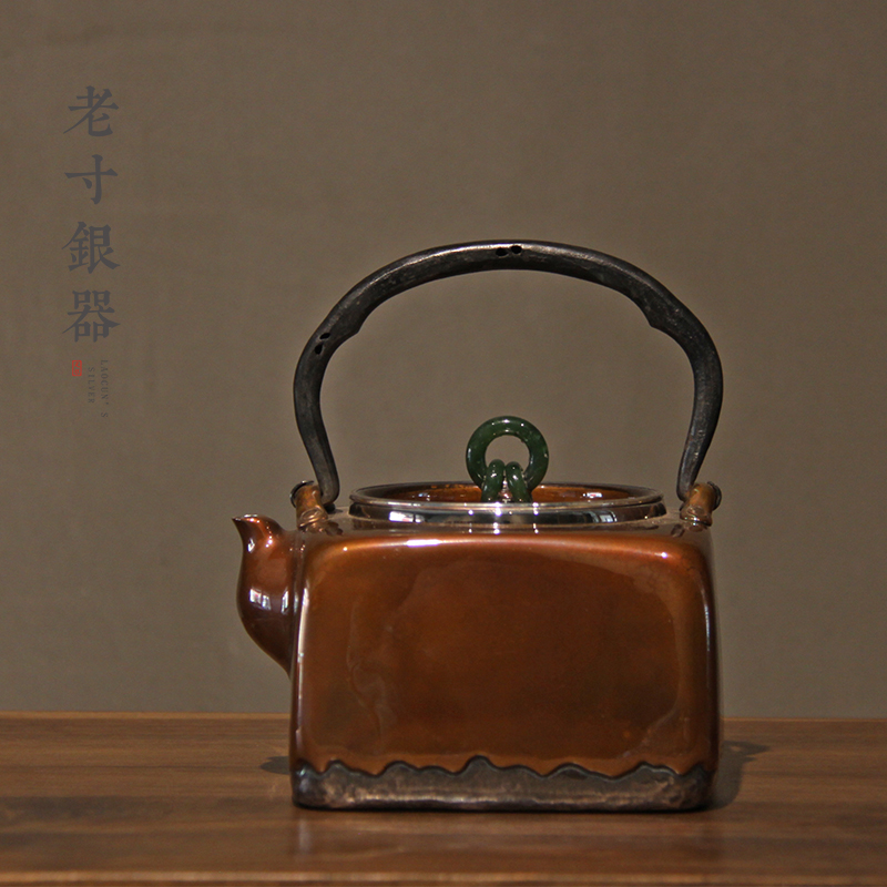 Silver pot Copper package silver pure handmade 999 kettle Silver teapot A copper package silver pot Sterling silver tea pot household