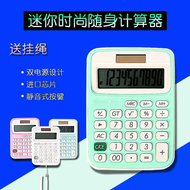 Student Mini Color Calculator Solar Power Dual Portable Cute Exam Mini Computer with Lash