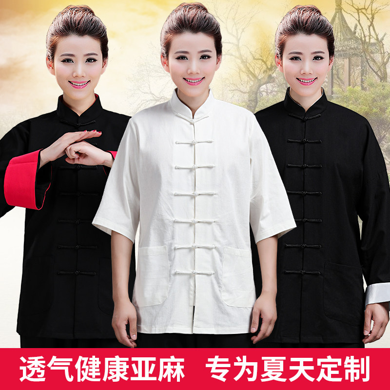 Summer Tai Chi Tai Shi Short Sleeve Martial Arts to Conquer Taijiquan Men New Cotton Show Performance in the Old Year