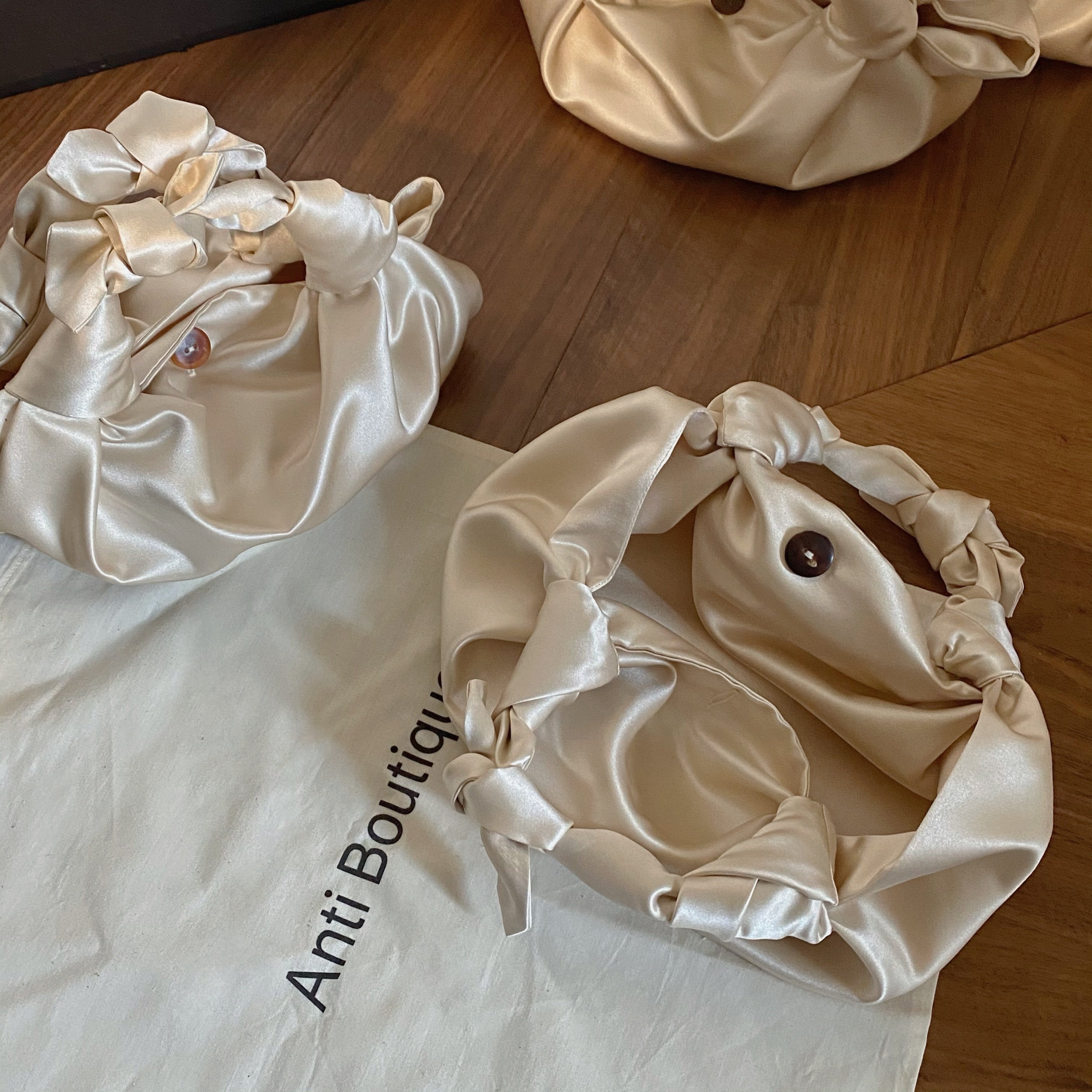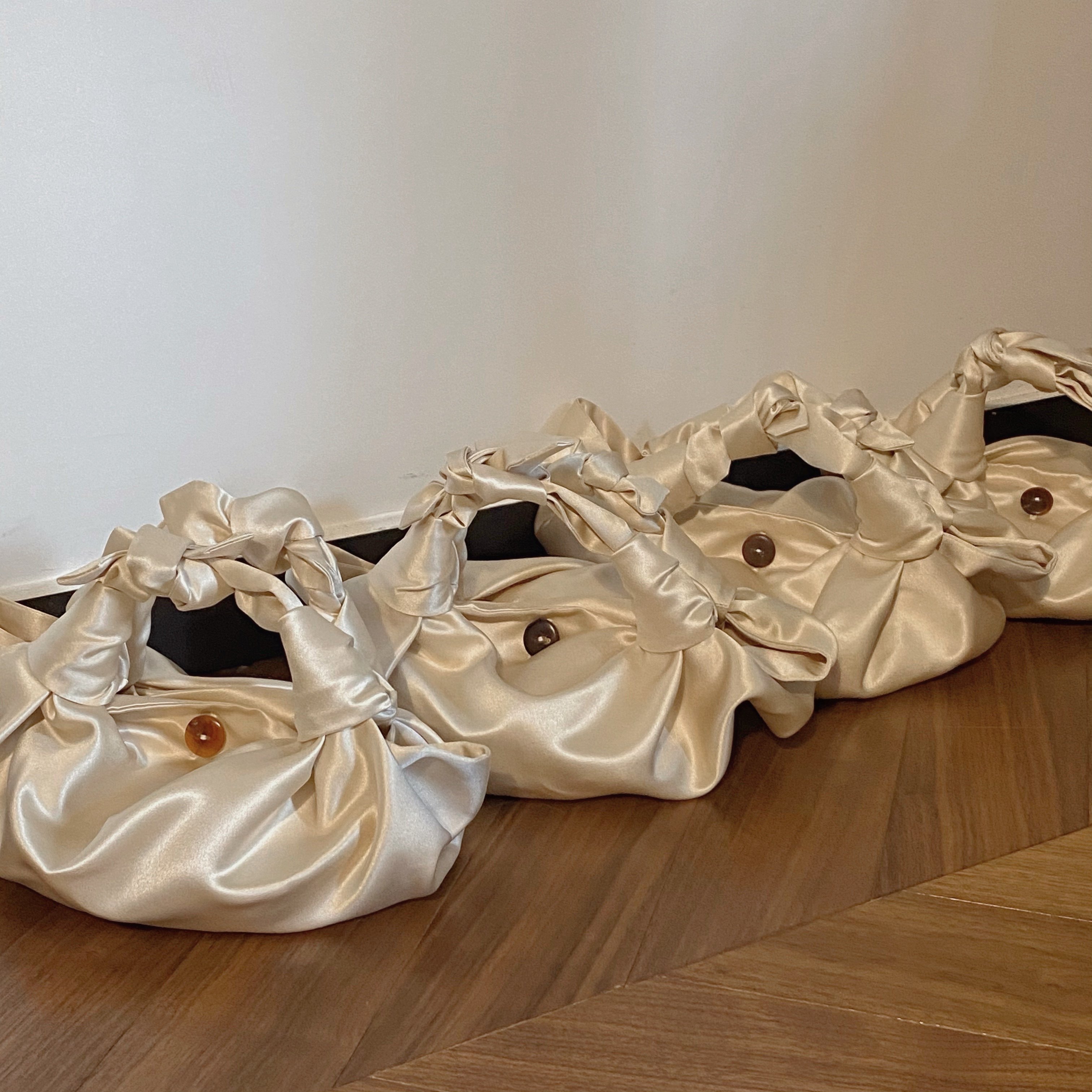 (Anti) cream tote bag cream rice satin noodles dumplings TH* ROW with hand carrying bag knotted baggage bag