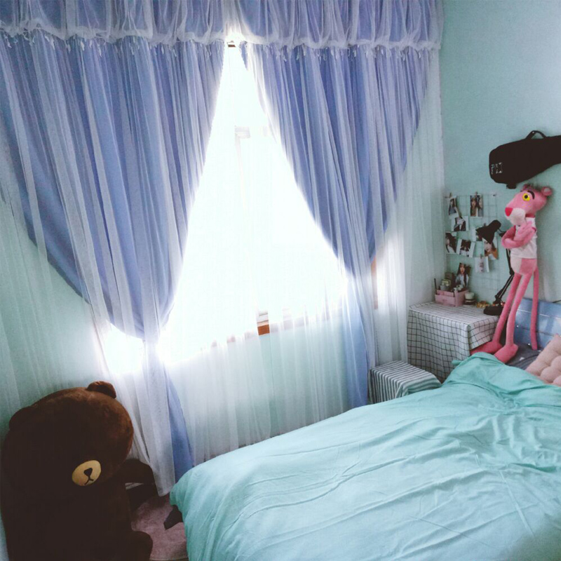 New Pink Princess Wind Shading Curtains Finished Living Room Bedrooms Nordic Brief Teenage Girl Hearts Mesh Red and Double