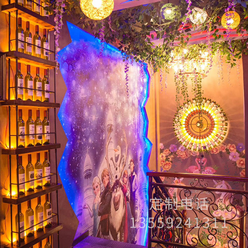 Wine cabinet wall solid wood display rack display commercial Wrought iron creative bar decoration wine rack Wall-mounted luminous wine rack